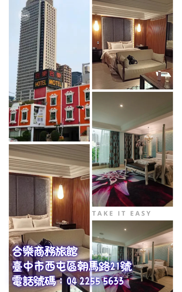 | 合樂商務旅館 | 朝馬路21號 | 499-699元 | 4.2/5 | 近轉運站、停車方便 | 外觀較商務 |